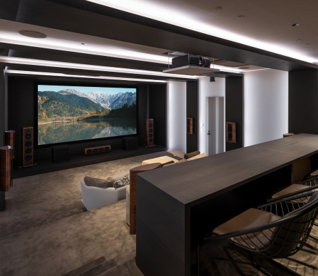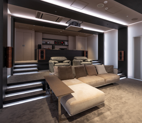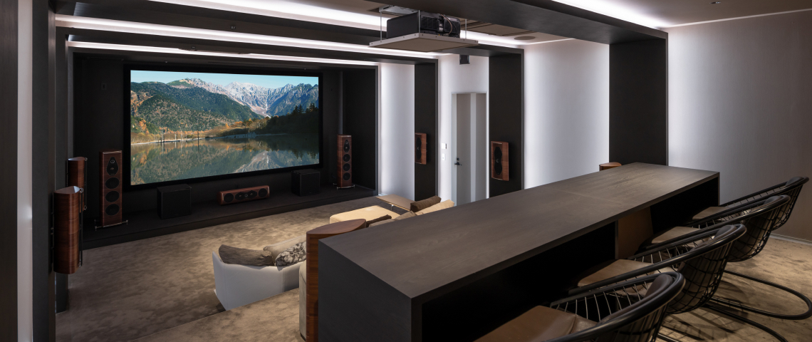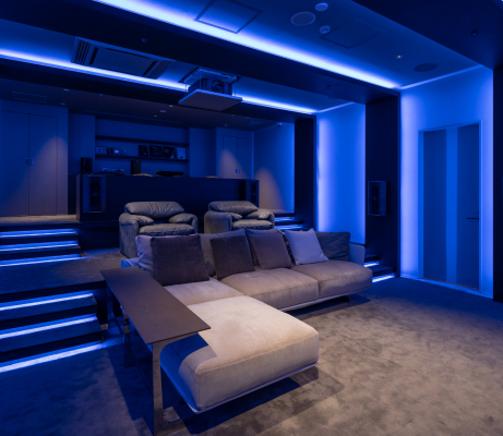 映像・音響・照明を統合した本格的なホームシアター空間。